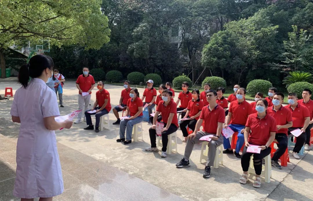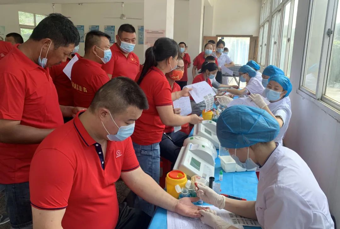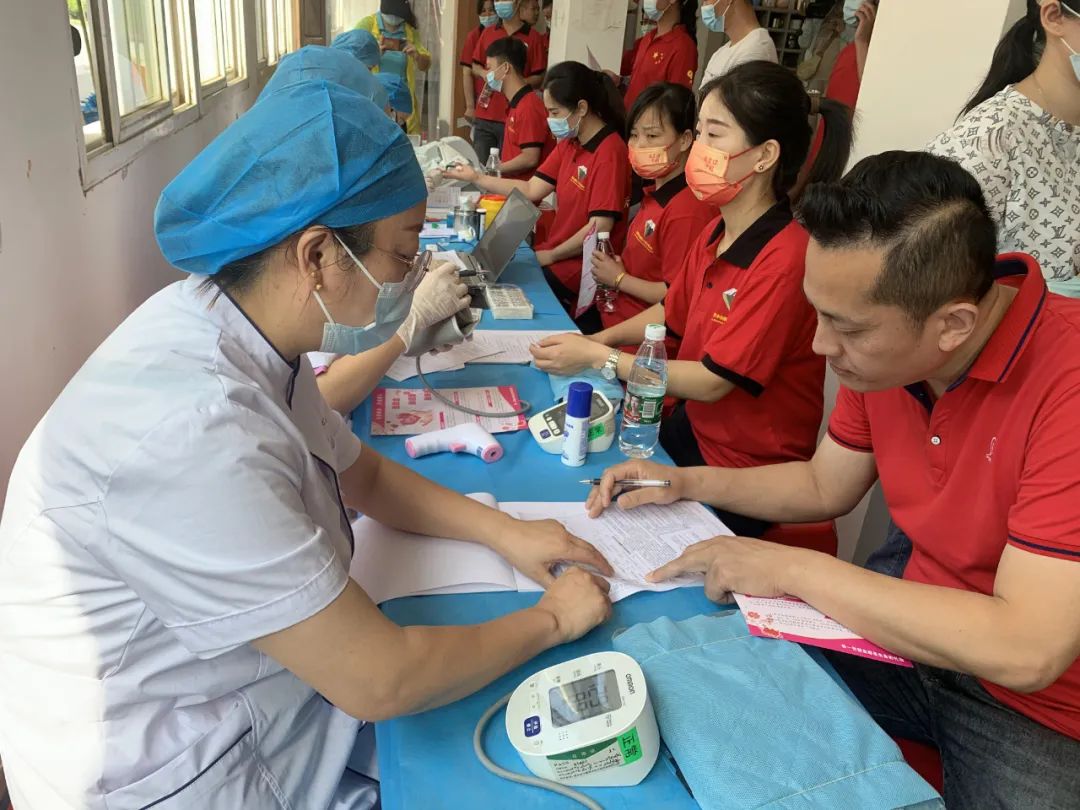 市中心血站的醫護人員認真的為報名體檢的同事登記信息、做身體檢查。