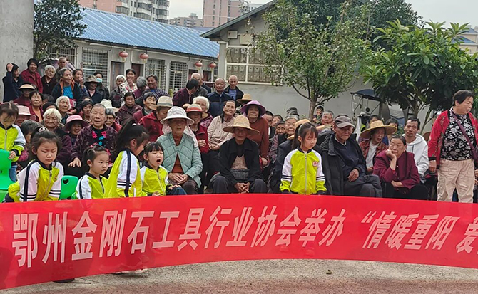 首先,帝豪幼兒園的孩子們帶來了精彩的開場節目,童真的表演贏得老人們陣陣掌聲,現場氛圍瞬間活躍起來。接著,協會名譽會長、會長先後致辭,向老人們致以節日的美好祝福,傳遞出金剛石工具行業全體同仁對老年群體的關愛與敬意。