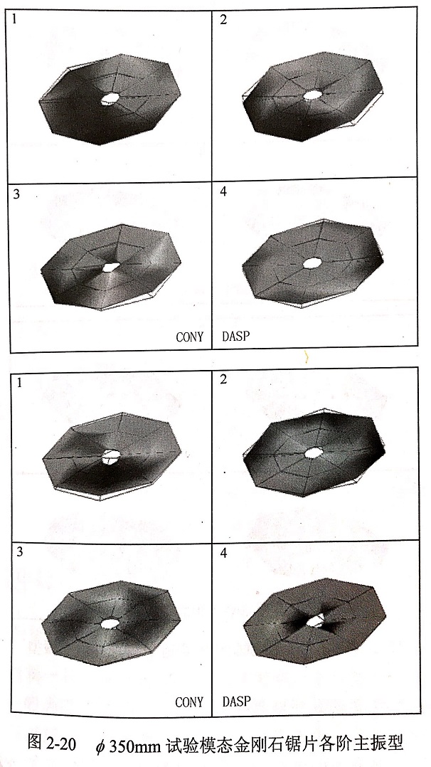 本試驗采用每組六個金剛石鋸片,對三組直徑為三百五/四百/五百齒數分別為24/26的金剛石鋸片進行模態試驗。